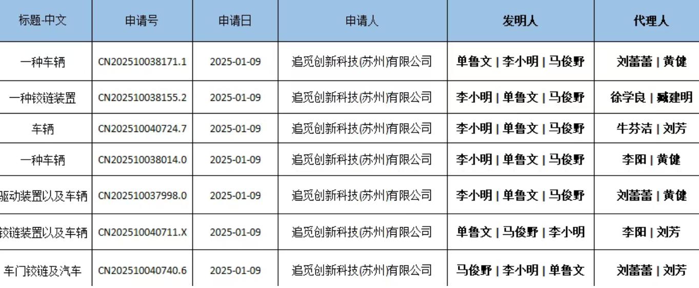 文章指出,7项专利均围绕同一套无B柱车门系统,发明人仅为3位工程师,而代理该批专利的专利代理人多达7位。